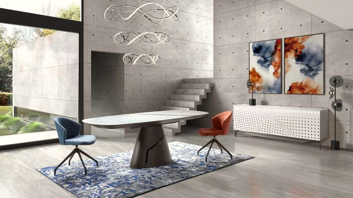 Pour un intérieur design et lumineux, imaginez votre espace en fonction de la lumière naturelle de la pièce. Et pour renforcer la luminosité, créez des jeux de lumière avec des miroirs. Vous pouvez également choisir des meubles qui reflètent la lumière, comme notre splendide CIRCLE : ce buffet design quatre portes semble capter la lumière et la diffuser dans la pièce grâce à ses empiètements en métal.