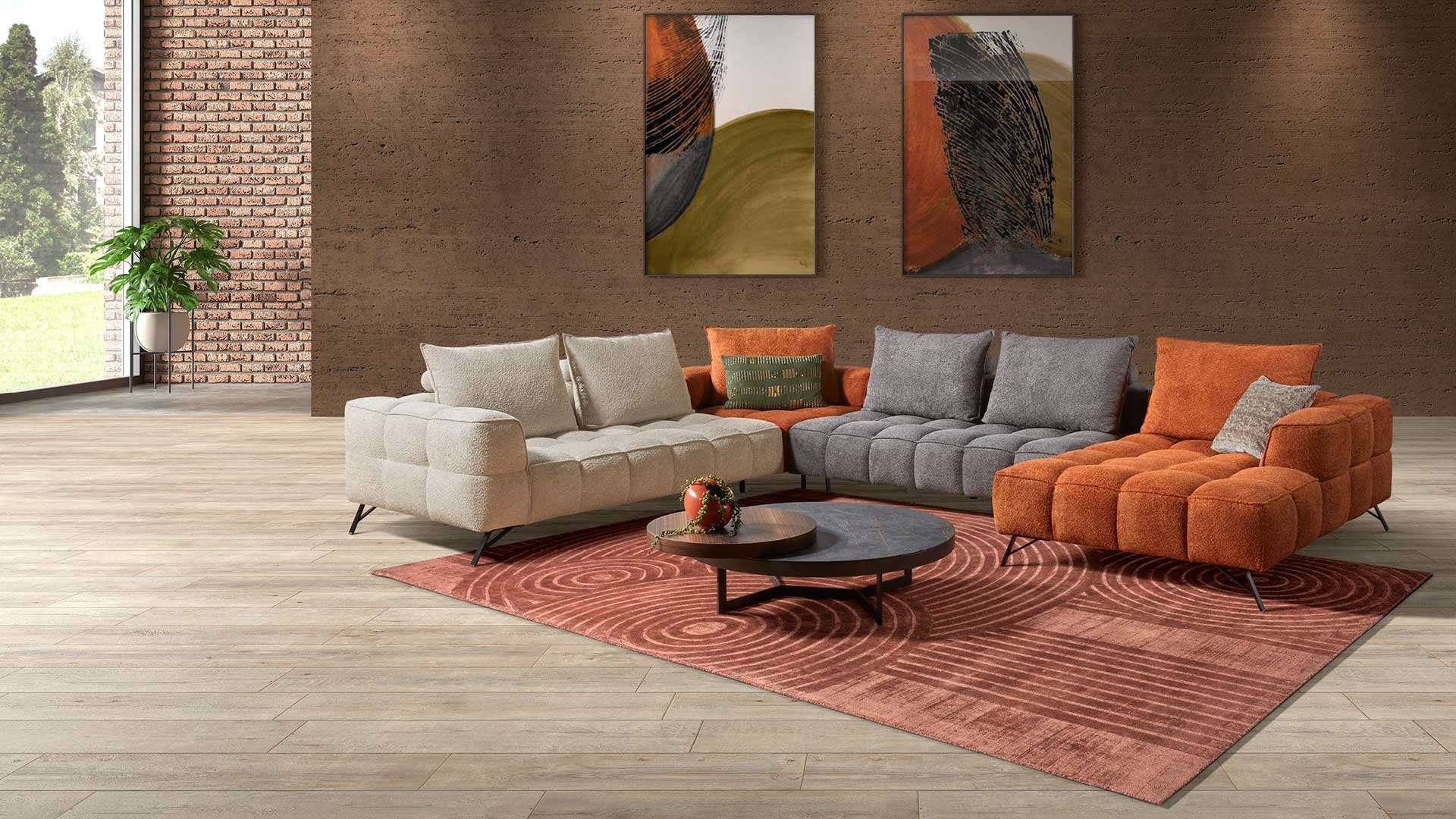 Tout d’abord par un retour de la douceur, des formes organiques, de la rondeur. Les lignes droites s’effacent au profit de volumes doux, rassurants, tactiles. Nos intérieurs réclament une ambiance cosy. Le retour des assises “nuages”, des poufs arrondis et des canapés bas répond à un besoin de confort émotionnel autant qu’esthétique.