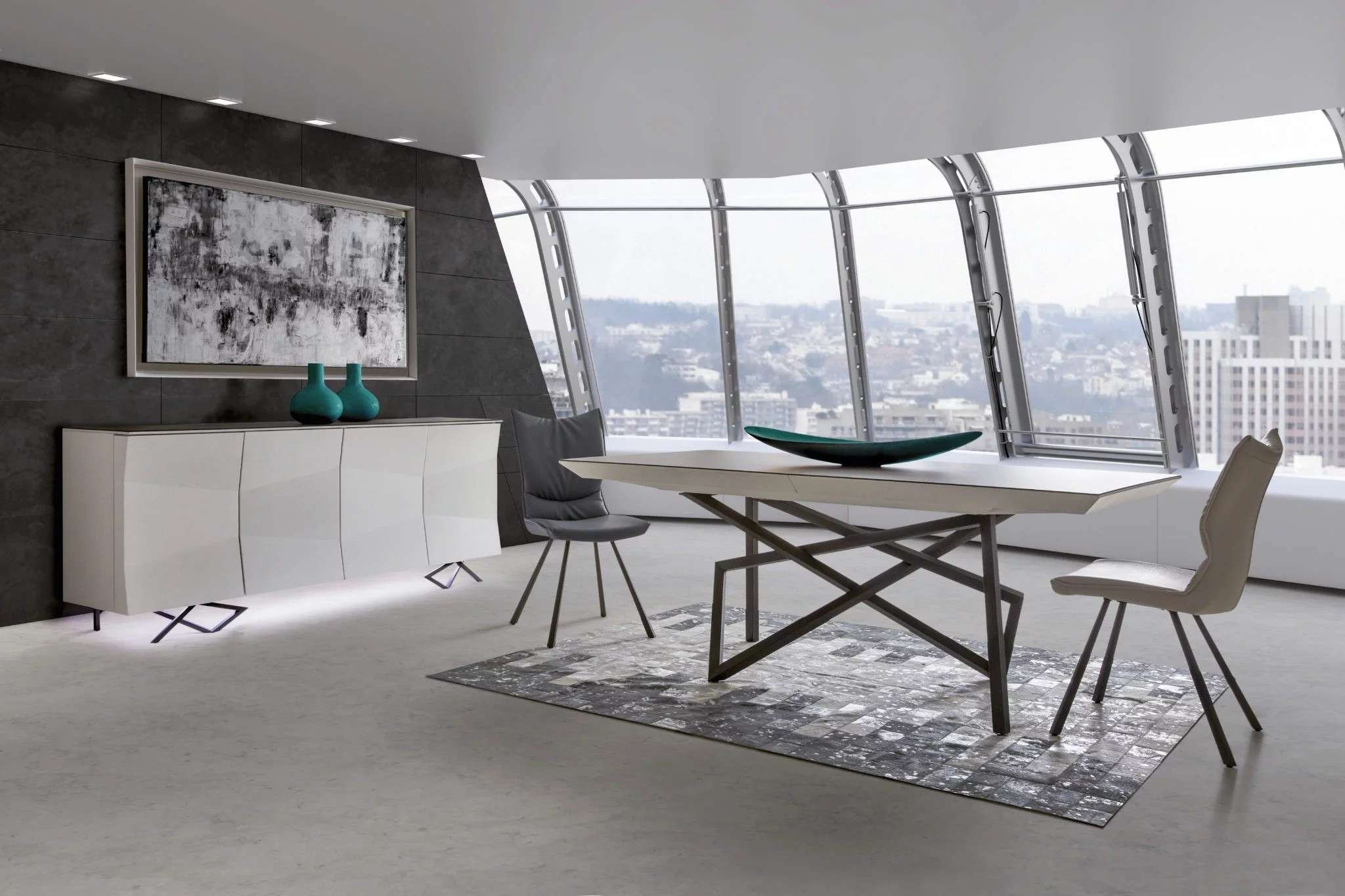 Il est présenté avec une table, pour un ensemble salle à manger ou bureau contemporain.