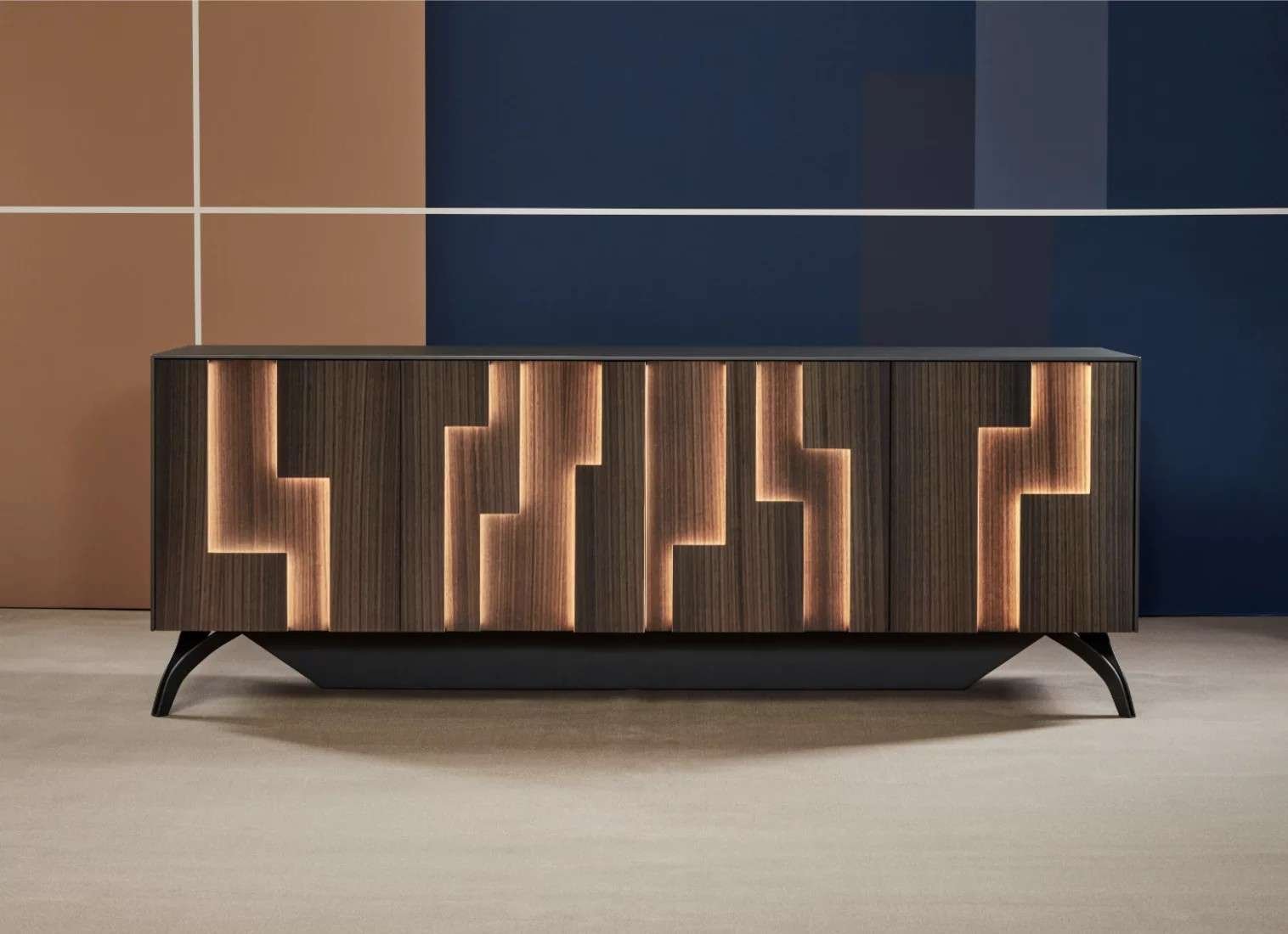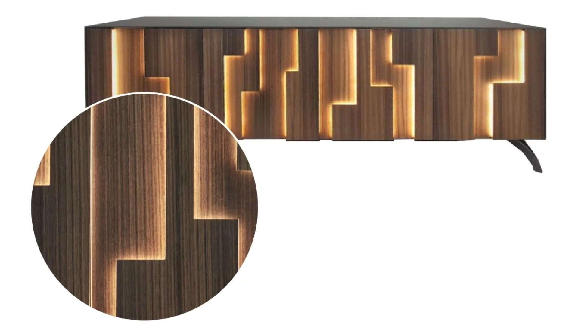 Sa marqueterie lumineuse en façade lui donne un effet 3D qui l’a consacré gagnant du MIAW Design Award de la catégorie Aménagement Intérieur : CASAA, buffet 4 portes, consacre le positionnement maison XXL, qui propose depuis 2 décennies du mobilier d’intérieur design et audacieux, à un prix étudié. C’est une grand fierté pour son designer Johnny Dos Passos et pour l’équipe maison XXL que d’avoir reçu ce prix, et nous décodons ici ses points forts : une maîtrise technique impeccable, de la découpe des bois à l’intégration de la LED, pour un meuble aux finitions soignées.